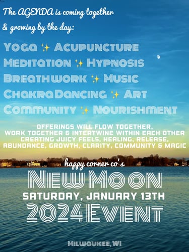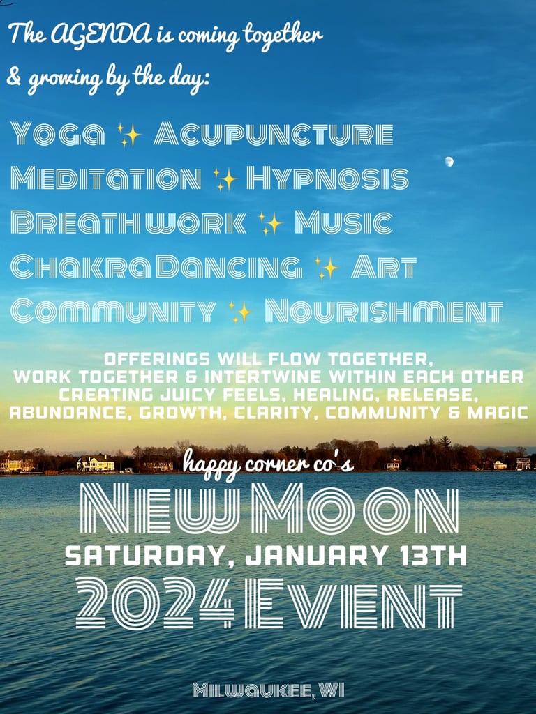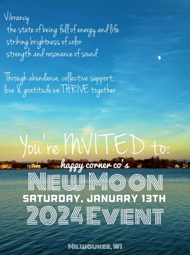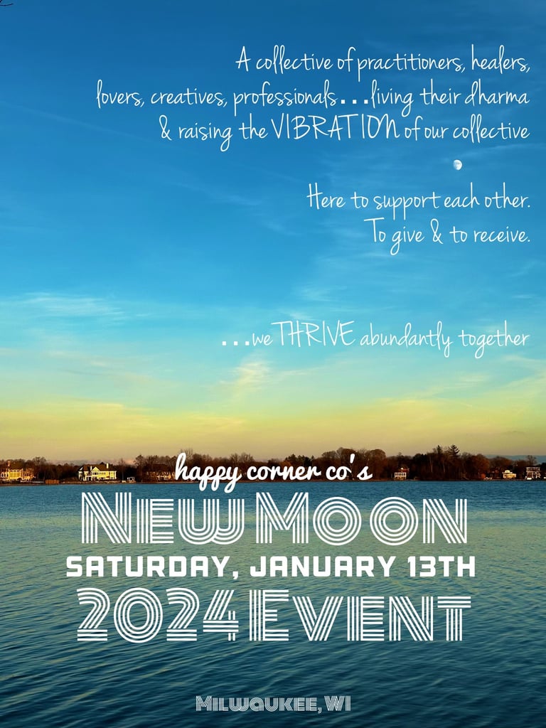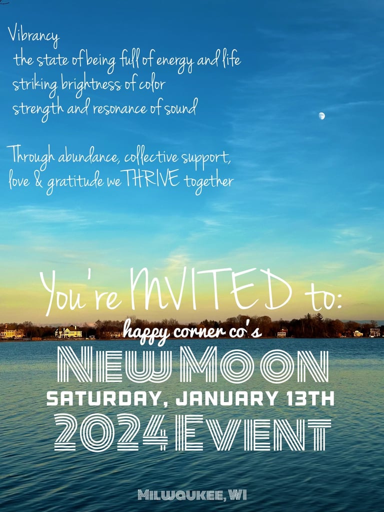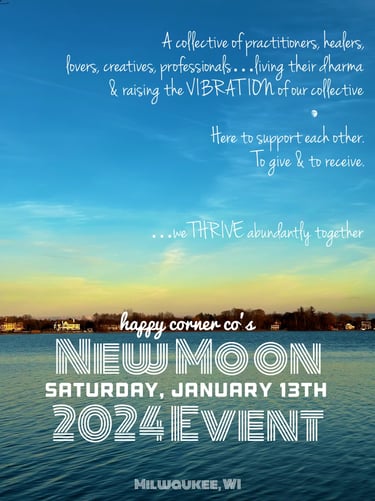Welcome to the Happy Corner Co. family where Co. stands for collective! We are so excited for you to embrace what the 2024 Happy Corner Collective New Moon Event has in store for you. Together, by supporting and loving the uniqueness in ourselves, we raise the vibration of the planet.