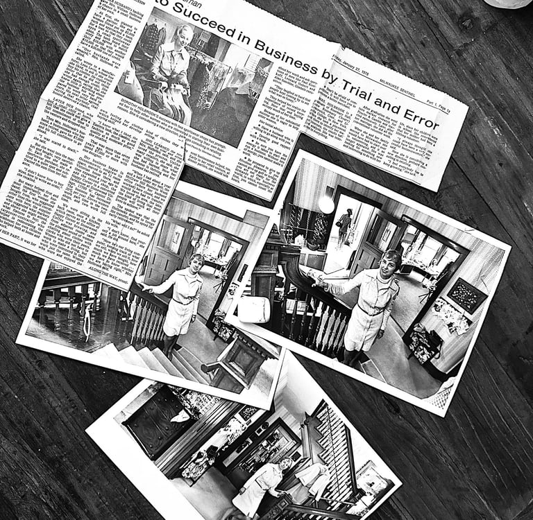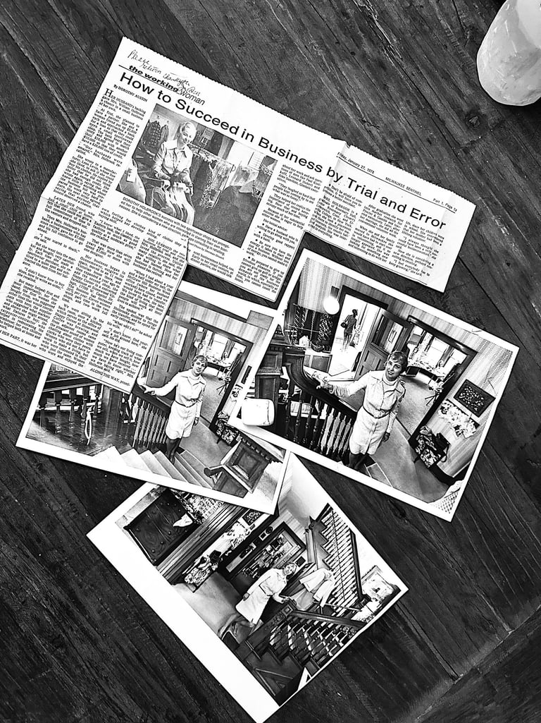 Dotty's version of Happy Corner was a women’s apparel business located in Oconomowoc, WI. Happy Corner was a mainstay in the community and brought lots of joy and great fashion to the city! Soon after opening the first Happy Corner store, Dotty opened a second store in Brookfield, WI. During this time, she was on the first Women’s Financial Board of the Heritage Bank of Milwaukee and lectured at the Waukesha Community College on “starting a business” and “dressing for a job interview”.